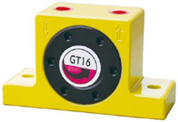 产品特点● 特殊铝合金外壳,重量轻、振动力大、噪音小。● 可瞬间启动,停止。● 振动频率及振幅可依使用需求调整。● 密闭性良好,配合用在防爆、粉尘、潮湿场所。● 适合低噪音场所的振动器,可解决小型桶槽物料附着或架桥、帮助物料流动,或装置与振动式筛选及输送机,输送整列、包装、充填等、、、、、。工作原理棘轮内装偏心铜合金配重,压缩空气喷入喷气孔冲击棘轮切口产生推力使棘轮旋转,棘轮运转时偏心配重的离心力产生振动,因运转是由滚珠轴承支撑,噪音低。外形尺寸技术参数