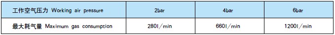 注:由于物料的特性各不同,实际耗气量可能与上述数据有所差异。 |